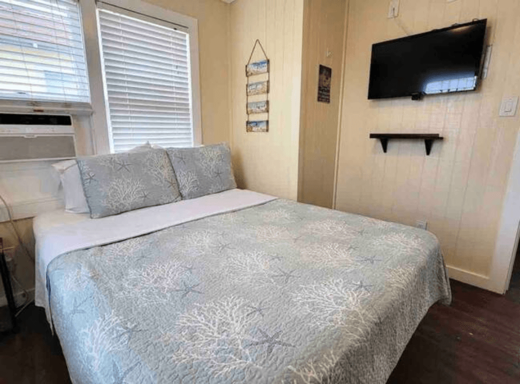 Cottage #7 (Sail Away) has been recently updated with a new configuration, and new furnishings. It also has a private, fenced yard which is perfect for dog lovers. When you enter, you'll find a kitchenette and a dining area that seats four.
