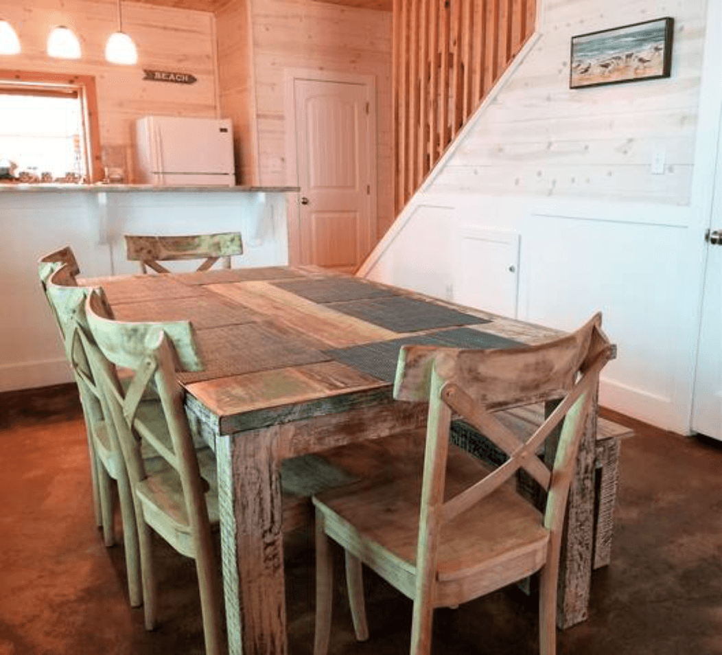 Harlie Bahama features a large, open living and dining area with plenty of seating for your entire group. Cable television and wireless internet is available for your use. There is also a full kitchen and pantry with a microwave, coffee maker, pots, pans, utensils, and other basic cooking supplies. The first floor also has a sleeper sofa, half bath, and a covered porch for relaxing while watching the kids swim or grilling the catch of the day in the picnic areas. There is also an outdoor shower for when you return from the beach.