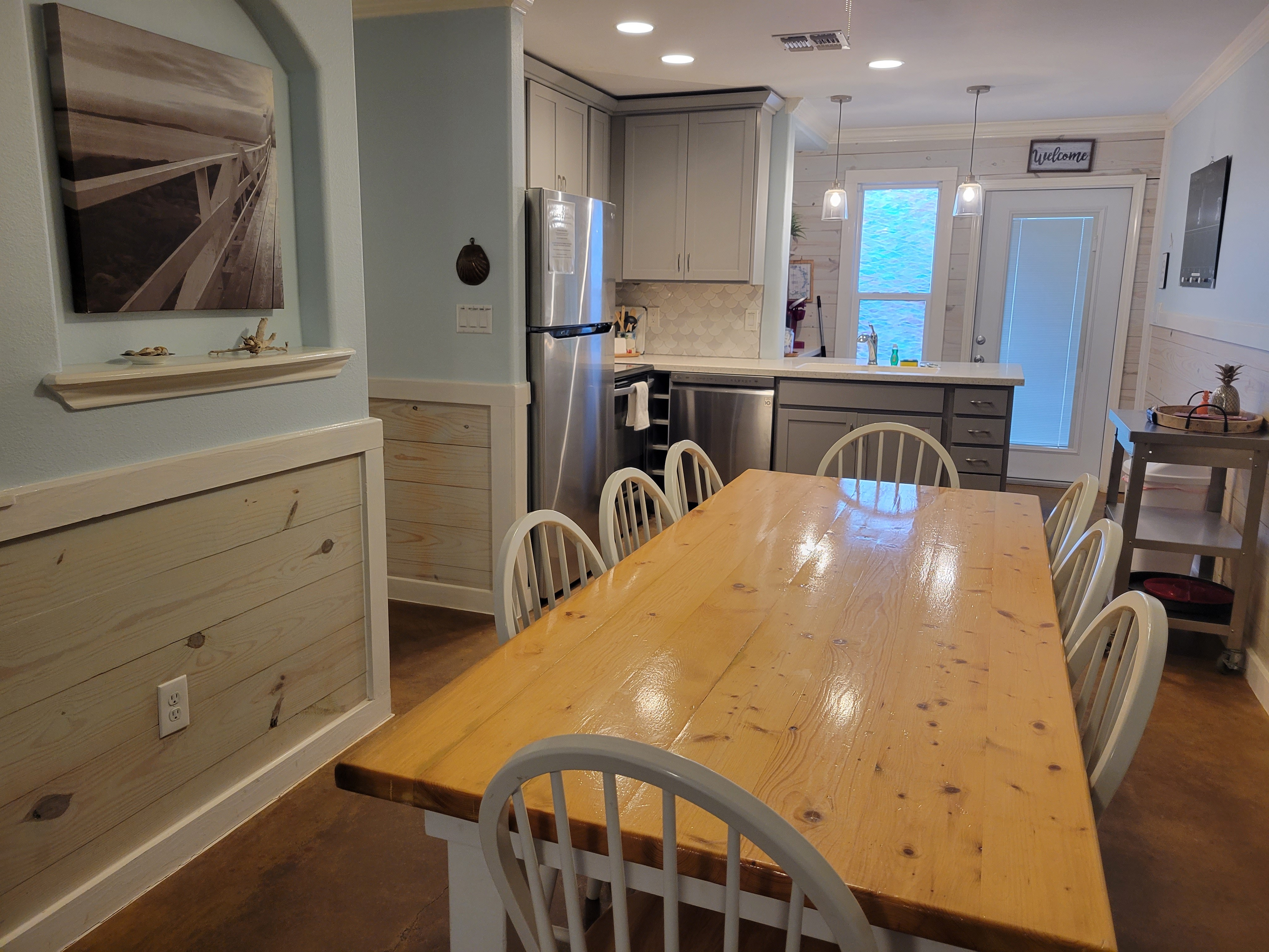 The tastefully-decorated home sleeps 11 guests, has a full kitchen, and features two living areas--one downstairs and an upstairs loft for the kids. There is a fenced patio for your cookouts and a 2nd-floor balcony to enjoy our sunsets.