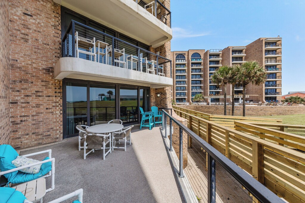 Off the living area is a large balcony with seating and great views of the ocean and one of the two pool areas. Watch the sun rise or end your day in the shade while checking out the fun at the pool.